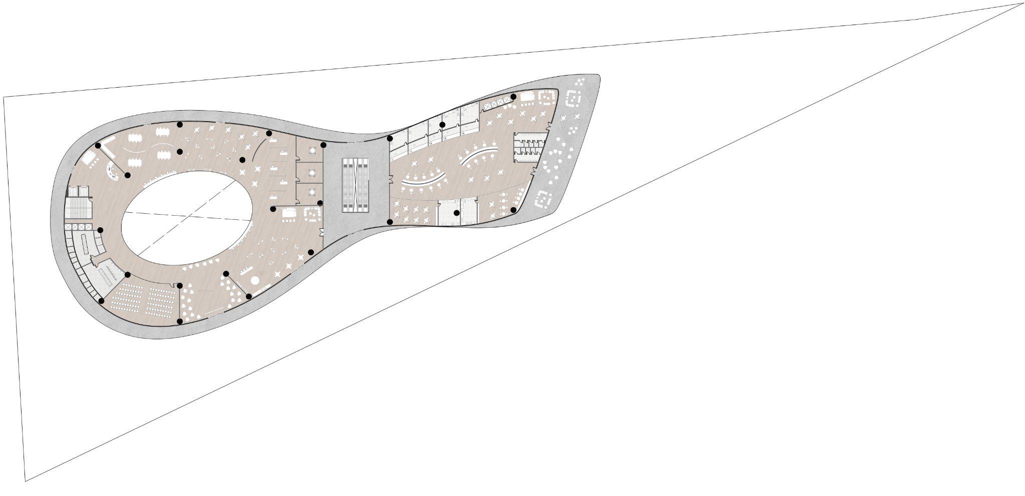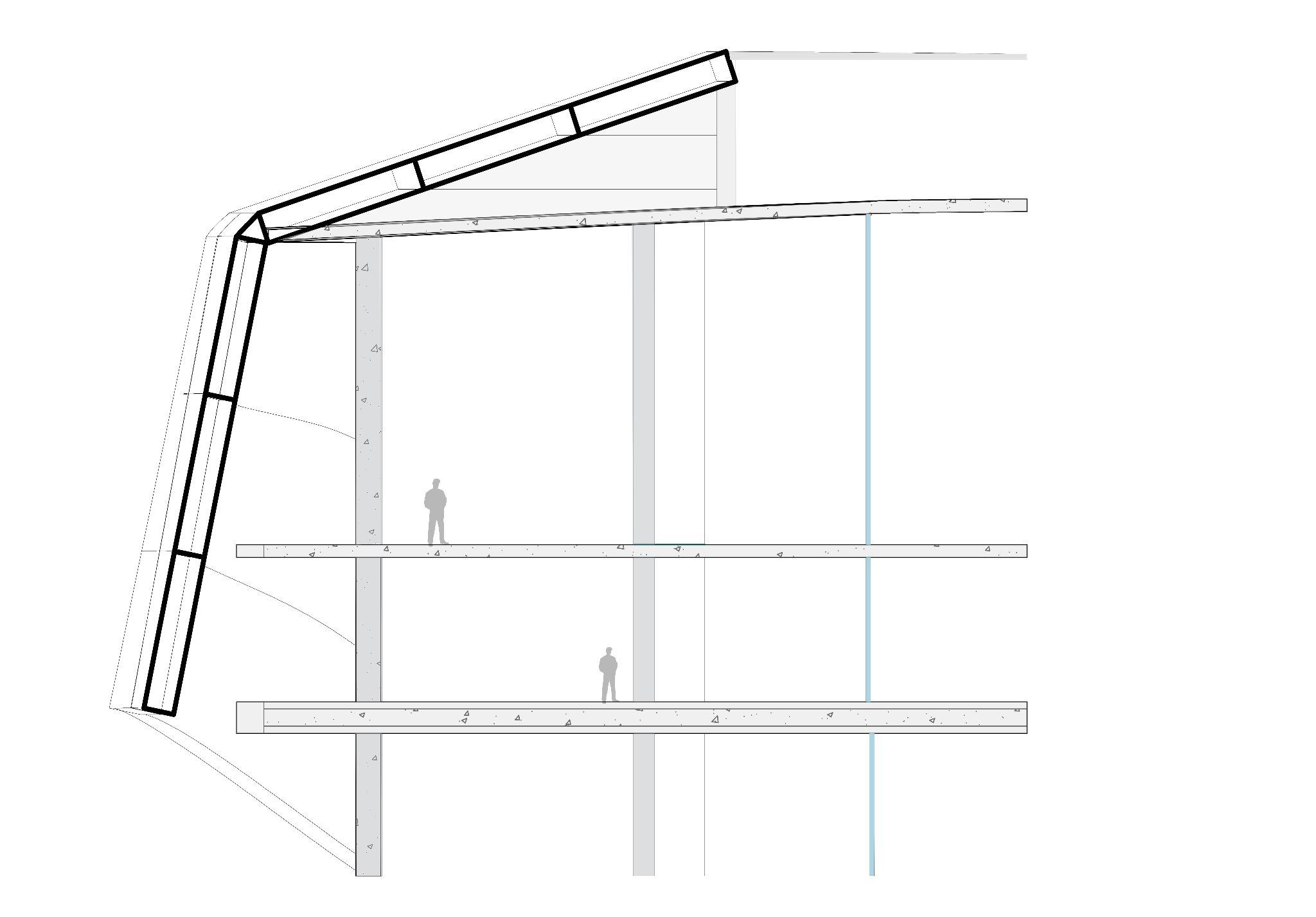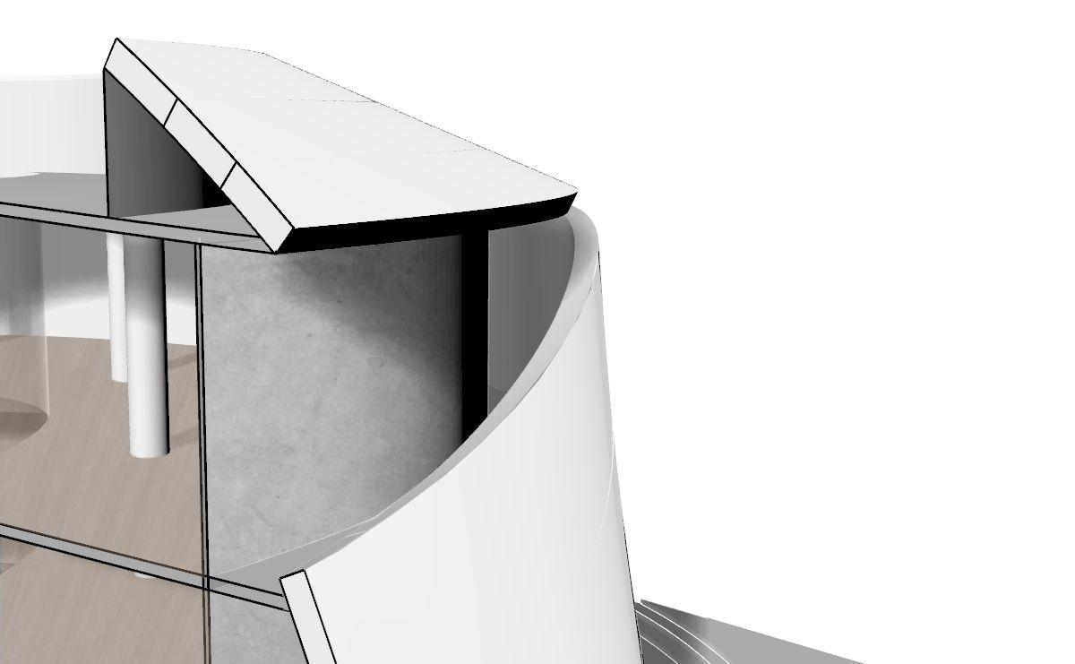 La piel se compone de una armadura a base de acero, esta armadura se sostendrá mediante cables tensores que se unen a las losas.