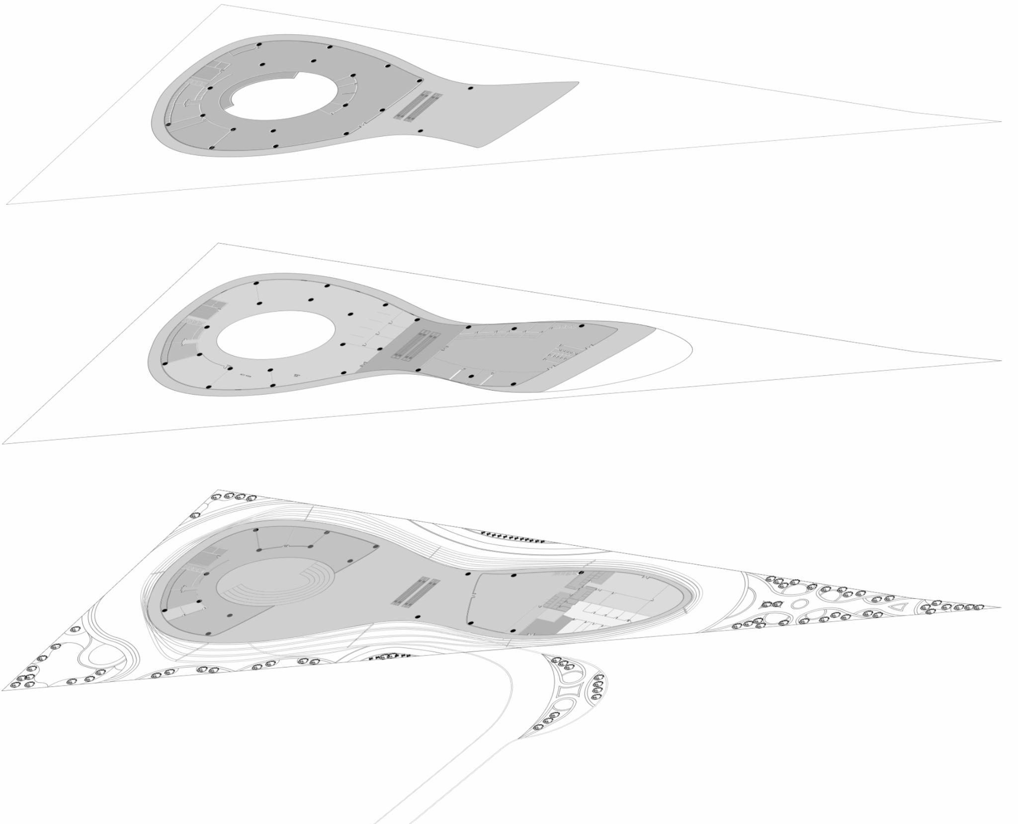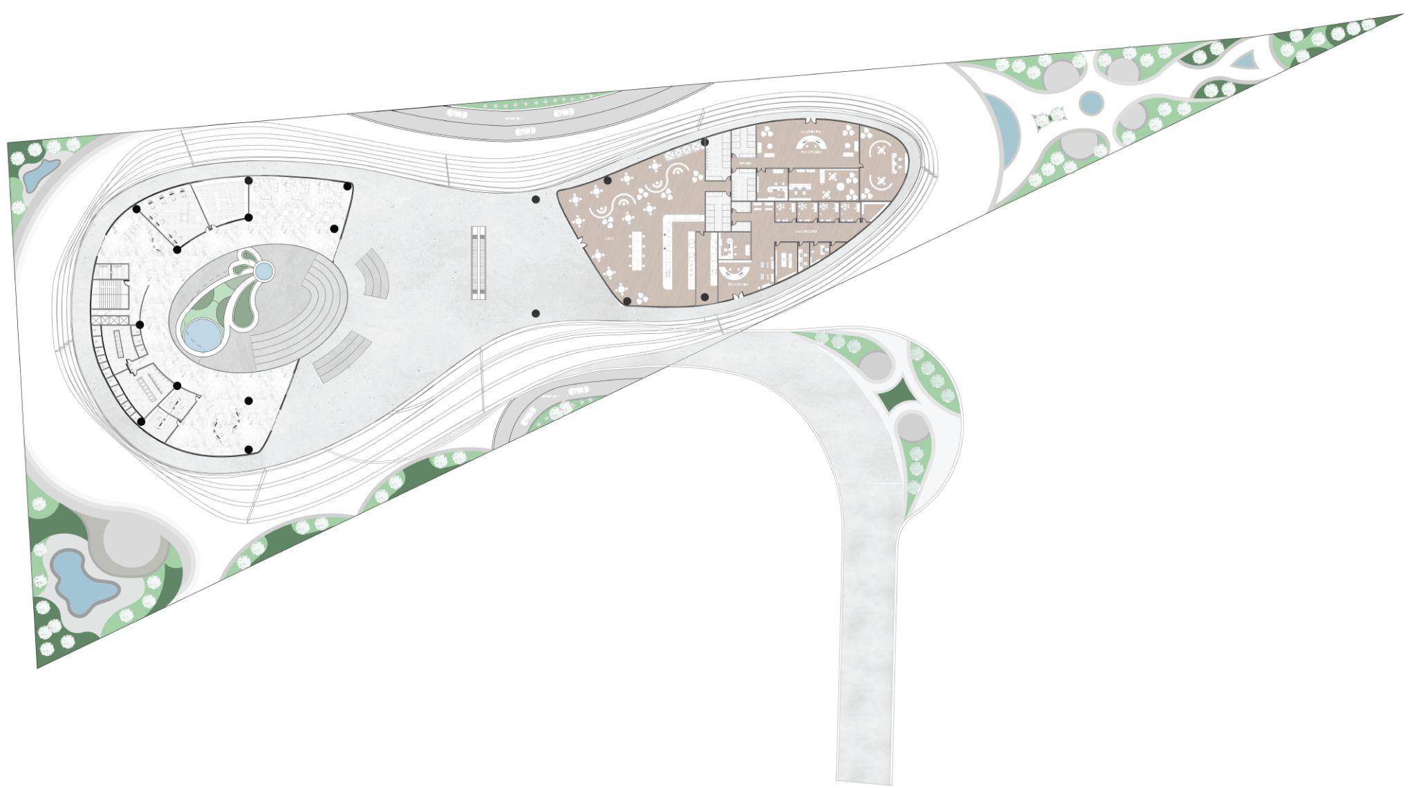 Como se puede observar con más claridad en los cortes, sí tenemos un desnivel considerable. Sin embargo, esto nos puede beneficiar para hacer espacios públicos y aprovechar los niveles más bajos para proporcionar espacios seguros y cómodos para los usuarios que deseen pasearporlaestación.
