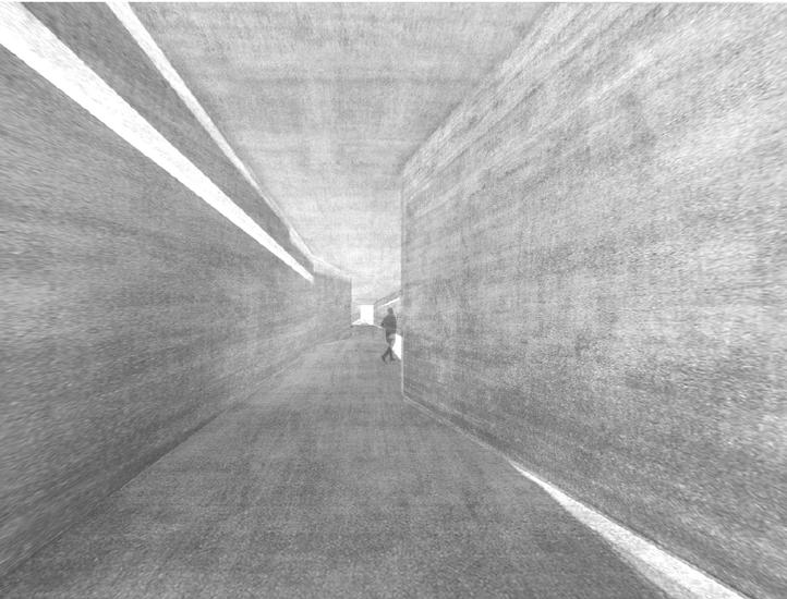 The proposal introduces four grand pillar-skylights designed to support the entire structure while serving as a source of natural light within the space. Hanging from these pillars are platforms that can vary in height, adapting to the nature of each exhibition. Due to this adaptable nature of the central space, circulation will occur along the perimeter, allowing for the facade to adopt a distinct character, adding contrast and avoiding mundane pathways.