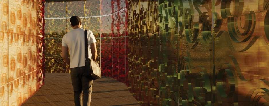 Through exploration with opacity, texture and color, the project looks to the implementation of bioplastics in architecture to generate different habitability conditions. Experimentation and study of lighting and chromatic qualities was made to develop an easily adaptable piece according to the use that is given to the space. The pieces are 20cmx20cm, and used 3 types of pigmentation, yellow, brown and purple wine. The biopolymer was manufactured by a pouring and drying method. The bioplastic was poured into molds, each with a specific pattern that experiments with a property of light. Produced through Grasshopper programming, 3D modeling in Rhino, and CNC cutting and assembling.