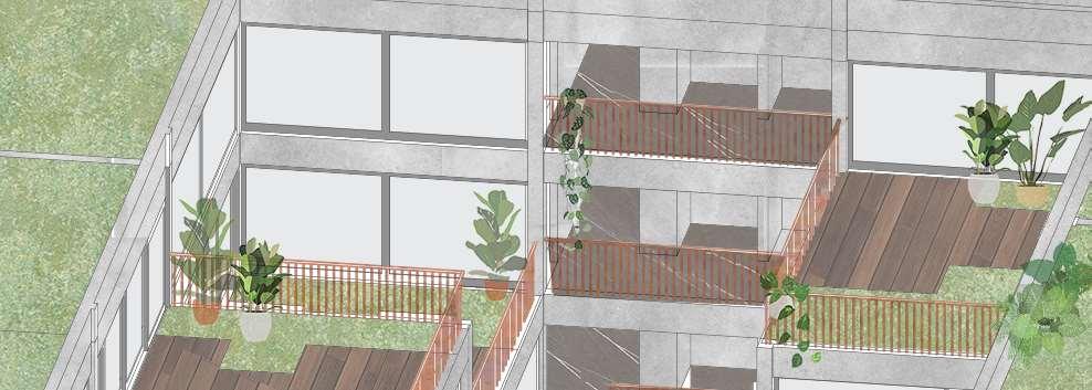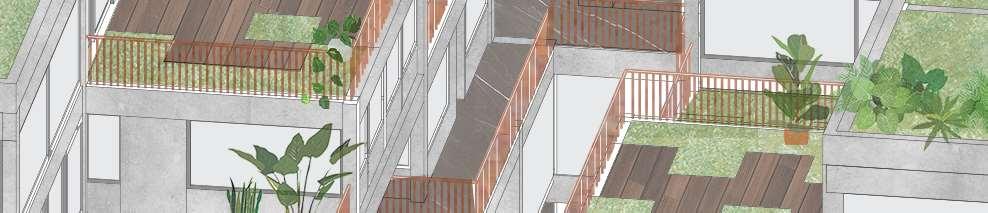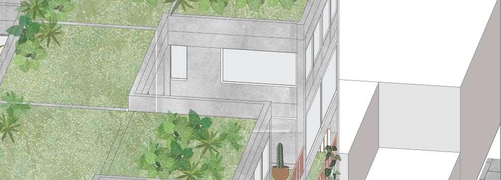 A proyect of mixed uses, created to serve as a natural connection between the wetland and protected park Santa María del Lago and the neighborhood. It houses college student cohousing, specially from the Universidad Uniminuto which is located close by. It also houses conventional housing, a lab of native species investigation and commercial spaces.