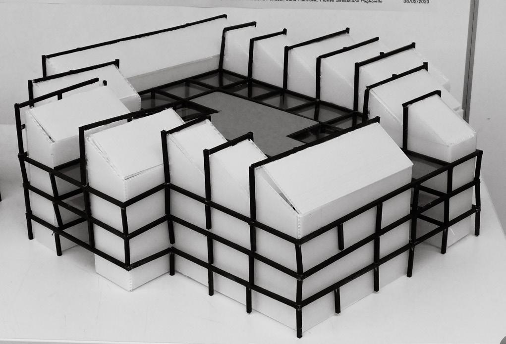 The local typology: the “casa di ringhiera”.Developed during the urbanization of the second industrial revolution, characterized by a central courtyard vertically surrounded by open air circulation routes is adopted for the project for its connotations of community and privacy essential for olympic athletes and, later, the students that will inhabit the residential complex.