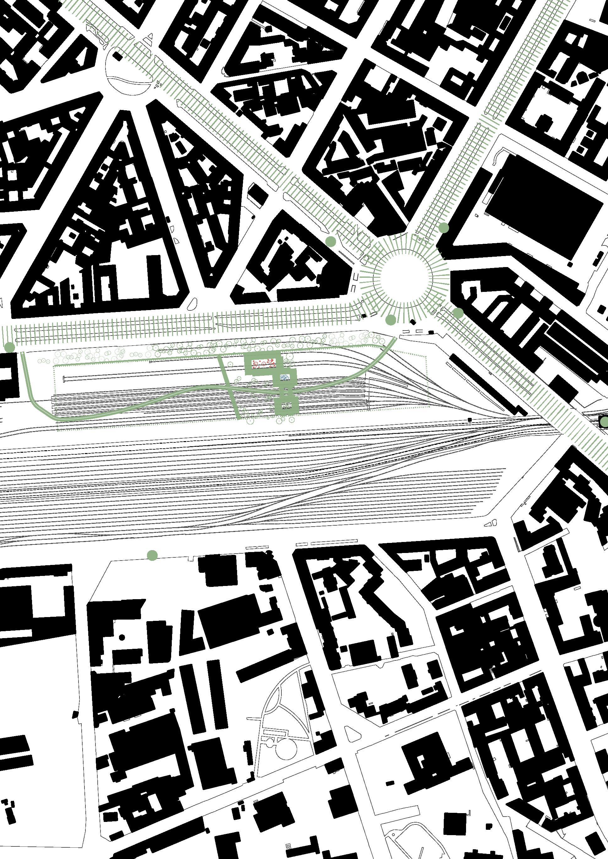 The site is highly connected with public transport, two entrances were placed in accordance to a bus stop in Via Isonzo and the metro stop in Piazza Lodi. These determine the main longitudinal circulation, whilst a secondary route crosses the plot perpendicularly. Distribution of greenery and building height was set by the desire to shield inhabitants and the central square from the high-traffic Via Isonzo, north of the site, and open to the requalified southern plot and Fondazione Prada.