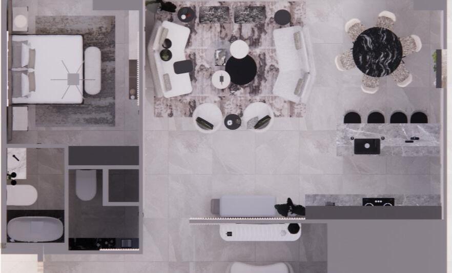 This project involves developing a Town Center in Samborondón, Guayaquil, Ecuador, by an architectural team. It features a series of multipurpose buildings, including retail stores, apartments, restaurants, decks, a gymnasium, and more. Although the project is complete in its renderings, construction has not yet begun. Since the planning stage, numerous floor plans have been provided to Adriana Hoyos Interior Designers, who have asked me to propose interior designs for several spaces: an apartment, an interior and exterior rooftop, and a gymnasium. These designs have primarily served as practice for using new platforms I’ve learned about as an intern, as well as for applying various design and color-matching techniques taught this summer.