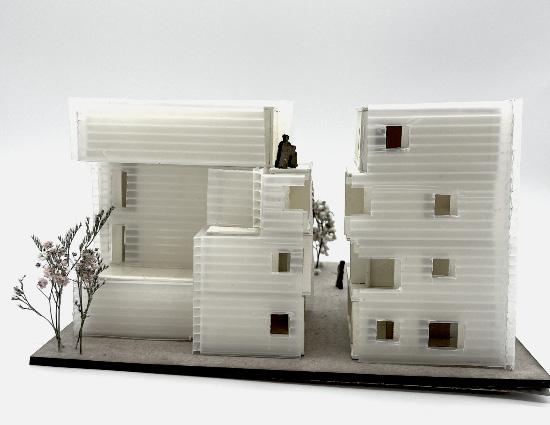 To bring the design to life, we built a 1:50 small-scale model and a 1:3 larger mockup. These models showed the stability, spatial layout, and how the materials complement each other in real life.