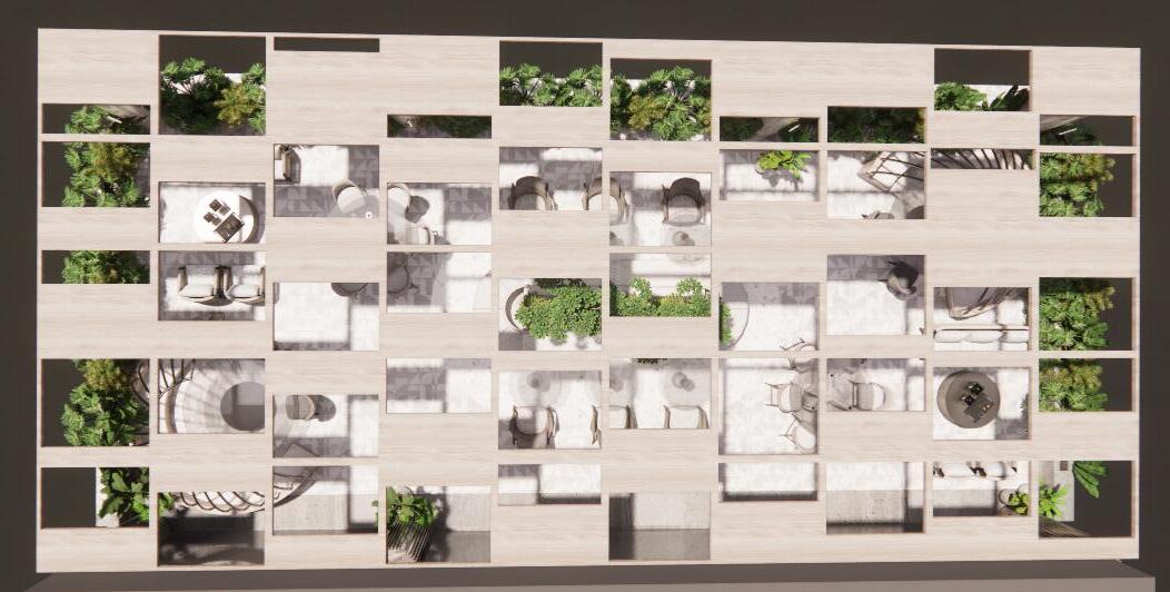 Our group project, developed with Arianna Moncayo and Micaela Torres, focuses on designing a transparent city that fosters community engagement through the seamless integration of public amenities and residential areas. We aim to achieve socioeconomic balance by incorporating job opportunities, social services, and study spaces to ensure inclusivity and accessibility. Easy navigation is prioritized with wellplanned pathways and interior circulation, enhancing connectivity. Sustainability is central, with eco-friendly solutions like green spaces and ground-level pathways. The versatile residential complexes accommodate diverse living conditions, while open and visible spaces promote security and a safe, transparent environment. Professor: Gloria