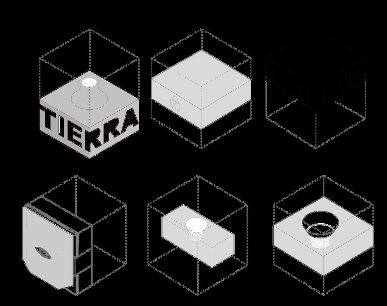 En esta triada explicamos el interior del proyecto y como se relacionan cada uno de los niveles, representados como cajas, la primera relacionada con el suelo, de donde surgen raíces que recorren el resto del proyecto. Además, de la relación tan estrecha con el suelo, existe una parte subterránea destinada al espacio de parqueaderos. La segunda caja explica la transición entre el nivel 1 y el 3, y la tercera representa el cielo, cubierto por un velo el cual filtra la luz que entra. El museo tiene una relación muy estrecha en su interior y cada una de las partes tienen una razón para jugar con la luz y la jerarquía espacial con el fin de crear este lugar de admiración artística.