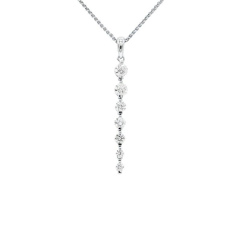 18 Karat White Gold Linear Diamond Pendant 18 Karat White Gold Linear Diamond Pendant ⦿ 8 Round Diamonds ⦿ 0.65 Total Carat Weight ⦿ Graduating diamond size ⦿ G-H Color ⦿ VS Quality ⦿ 14 Karat white gold 18 inch chain For shopping visit: https://sofiajewelry.com 12 12