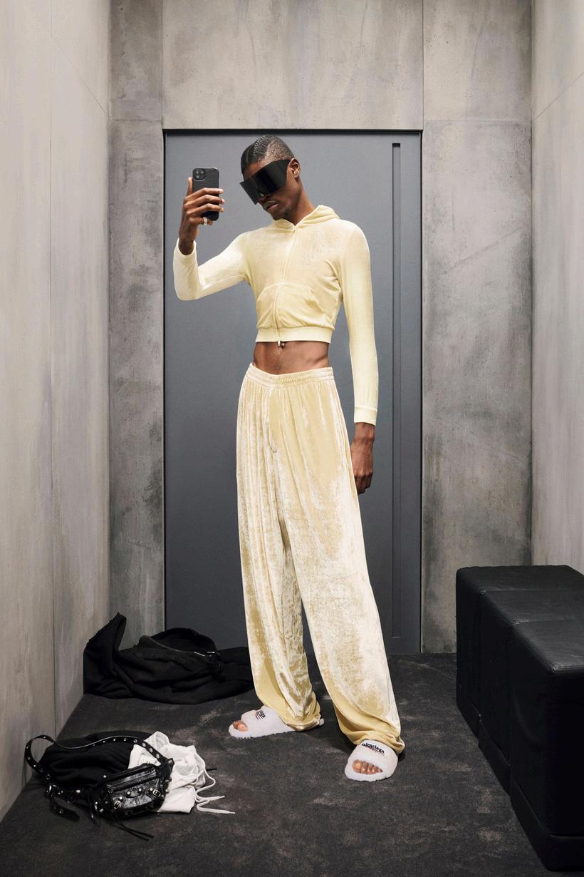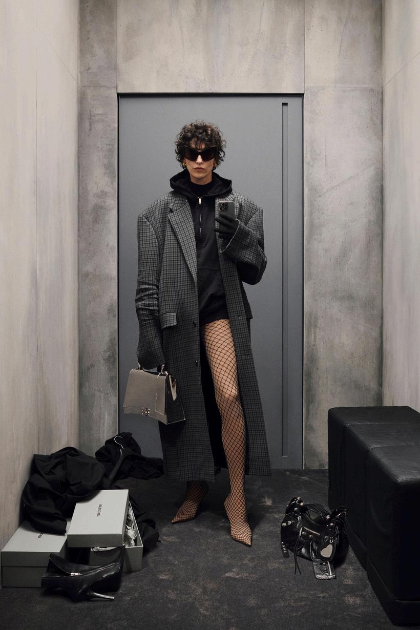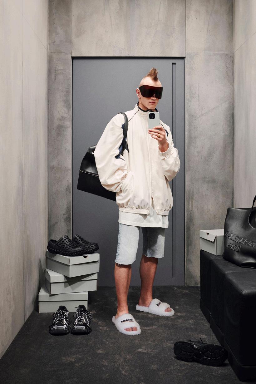 En esta colección se notablemente los lentes casi la mitad del rostro. utilizaron con frecuencia bolsos con textura elemento presente en fueron las ojotas, que estilo muy relajado a la propuesta. Un aspecto a resaltar colección es el esfuerzo por conectar con fomentar el regreso a presentación de la colección fotos tomadas por modelos en los probadores tiendas de Balenciaga. estrategia busca motivar clientes a visitar probarse las prendas, y compartirlas en las redes promoviendo así una más interactiva y cercana marca.