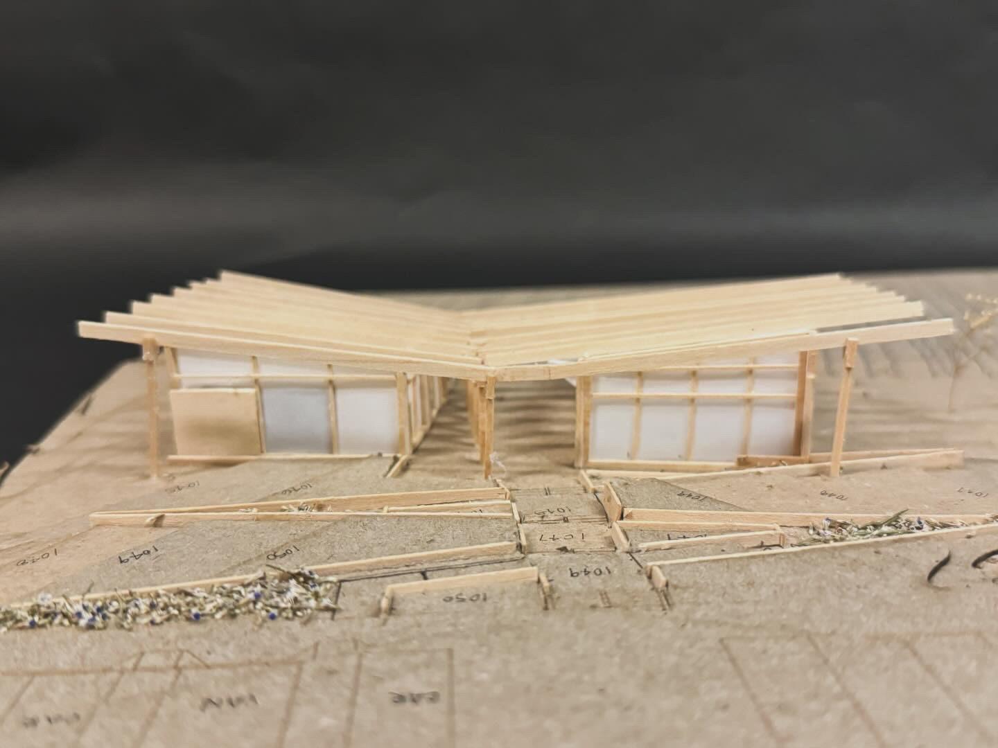 The purpose of this project was to design a stand-alone structure, open to the elements most of the time, but providing the possibility of closure to keep the interior furnishings and finishes protected. This project explored the entry sequence and separation of public and private spaces. The first open space in the classroom opens up to a courtyard connecting the restrooms and office/kitchen spaces.