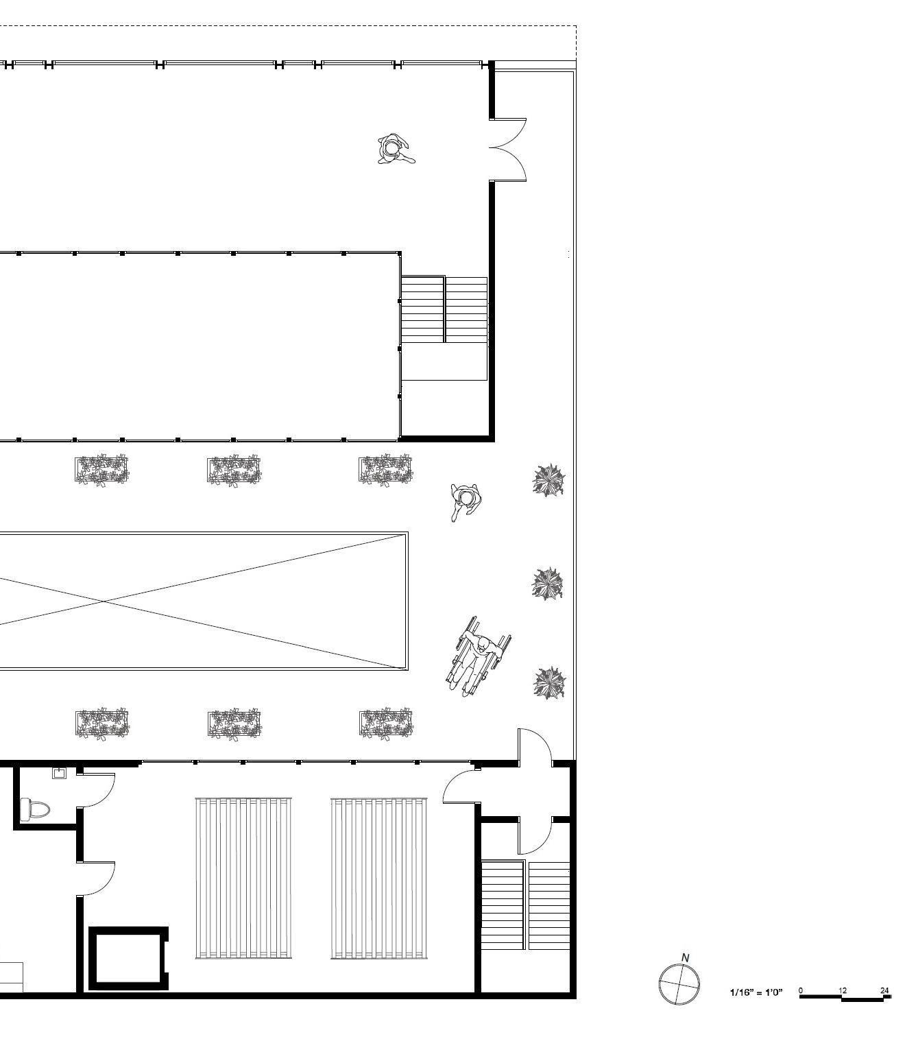 This project explored the entry sequence and separation of public and private spaces. The first open space in the classroom which opens up to a courtyard connecting the restrooms and office/kitchen spaces.