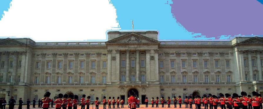 Construido en el año del 1703 para el duque de Buckingham, el majestuoso edificio fue adquirido por el rey Jorge III en el año 1762, con el propósito de convertirlo en su residencia privada. Desde su construcción inicial, el palacio ha experimentado numerosas ampliaciones y de sus remodelaciones a lo largo de los años, consolidándose como un símbolo de la grandeza arquitectónica. Durante las dos guerras mundiales, el palacio demostró una notable resistencia. Durante la Primera Guerra Mundial, se vio afortunado al no sufrir ningún ataque directo. Sin embargo, en la Segunda Guerra Mundial, el palacio fue blanco de bombardeos en varias ocasiones, resultando en una devastadora pérdida cuando la capilla real quedó destruida por uno de los bombardeos más significativos. Las visitas al interior del gran palacio solo están permitidas durante unas escasas semanas al año, comprendidas entre finales de julio y principios de septiembre. Se ofrecen dos tipos de entrada diferentes: una modalidad que permite explorar los impresionantes Salones de Estado, además brindando una experiencia aún más completa. Además de las visitas al interior del palacio, a lo largo de todo el año se lleva a cabo el icónico Cambio de Guardia frente al imponente edificio, un acontecimiento que atrae a miles de visitantes ávidos de presenciar esta tradición histórica.Justo frente al Palacio, se erige el majestuoso Victoria Memorial, una imponente estatua de la reina Victoria orientada hacia The Mall (una carretera que conduce a Trafalgar Square), cuya vistosa pintura roja da la impresión de una alfombra gigante. Esta gran estatua está coronada por una figura dorada que representa la Paz y la Victoria, evocando la grandeza y el legado histórico.