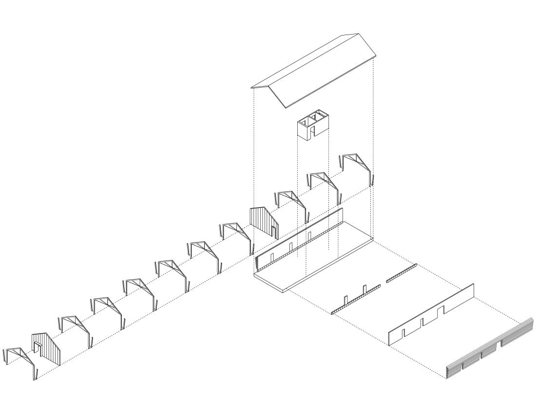 Auburn University and Rural Studio have been working on the restoration and redesign of Lions Park since 2006. The remodel includes new landscaping, public restrooms, playing fields, a skate park and playground. To honor the local boy scouts that had cleared out undergrowth and upkept trails during construction, the Scouts Hut was designed to provide an identifiable headquarter. The hut incorporates a multipurpose space, kitchen, restroom, and storage space. The structure was constructed with a series of wooden frames and harvested small timbers that were used for exterior cladding and structural ballast.