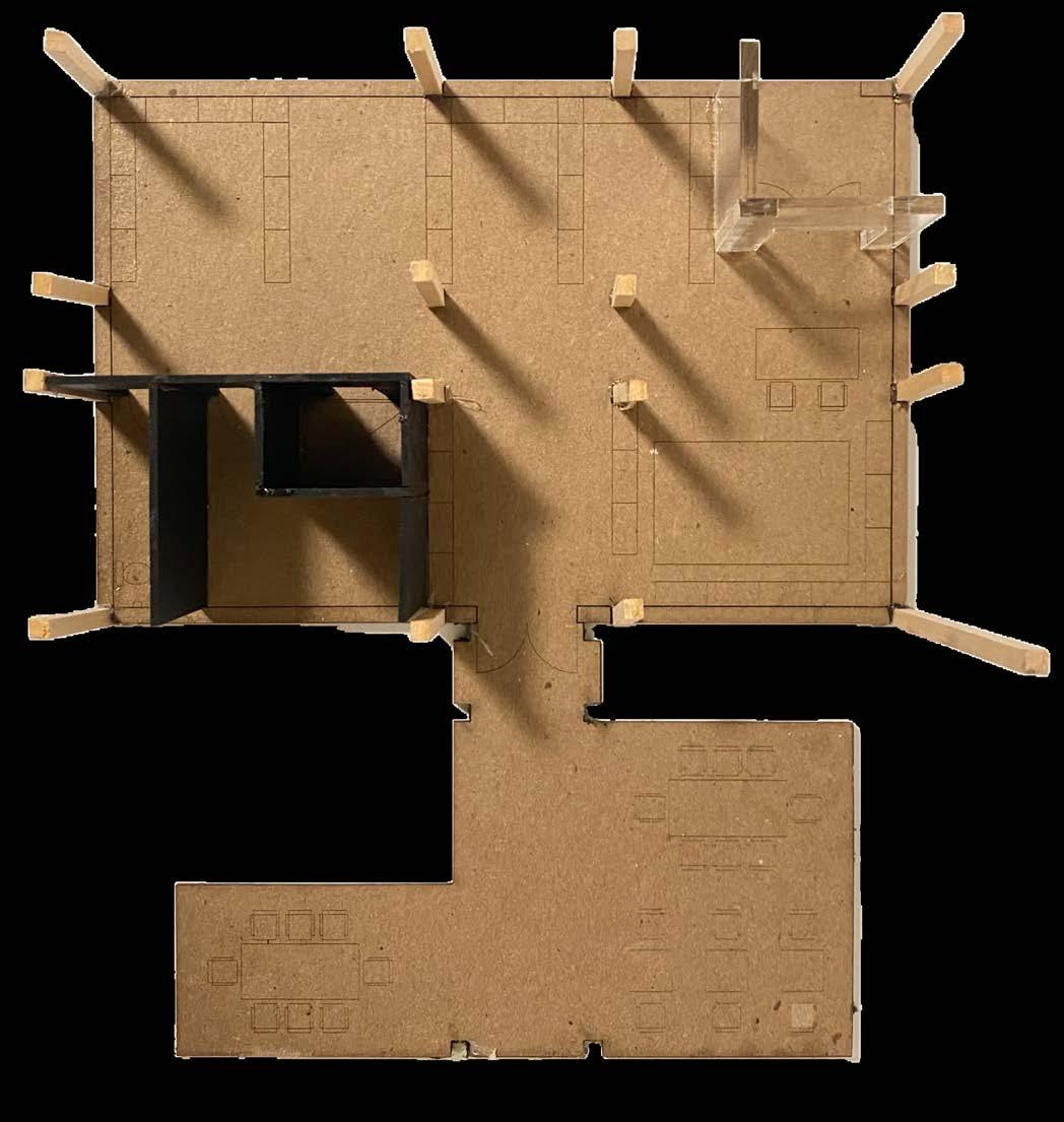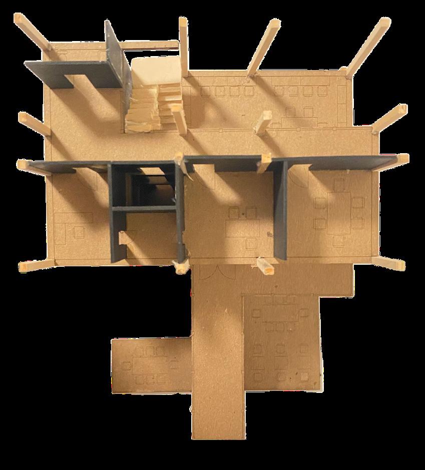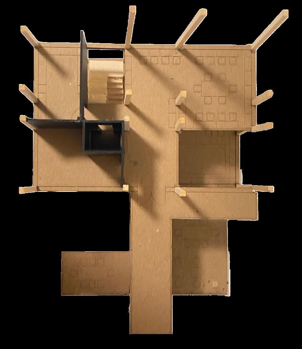 This community center acts as an addition to the existing site through the placement of its programs and its adjacency to the important activities and buildings surrounding its perimeter. Ramps and walkways then ribbon through these modules of programs with a central circulation system that accomodate to signed conversations and visual visibility.
