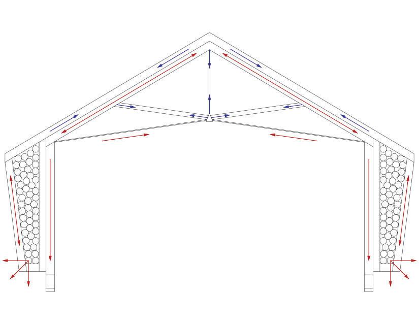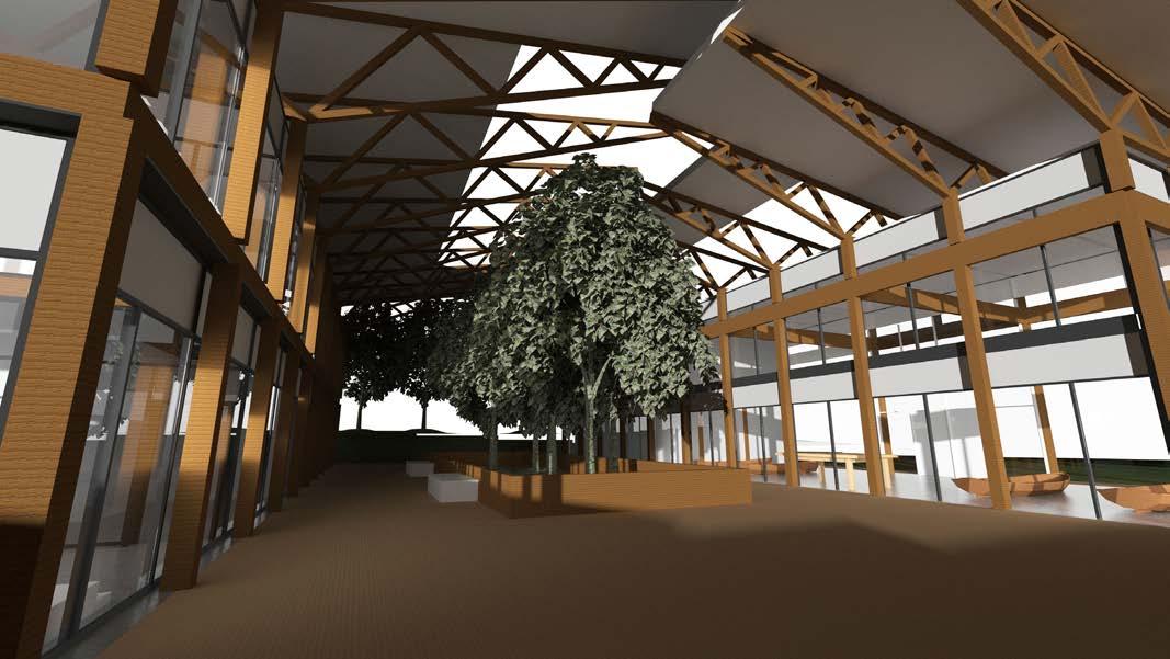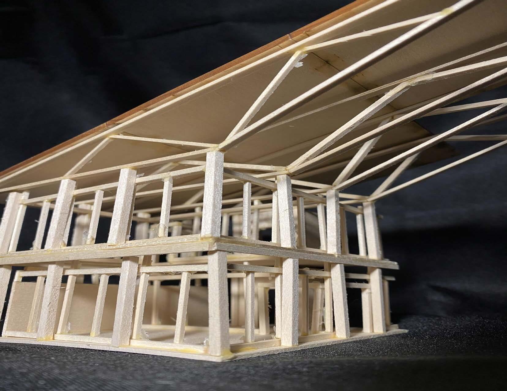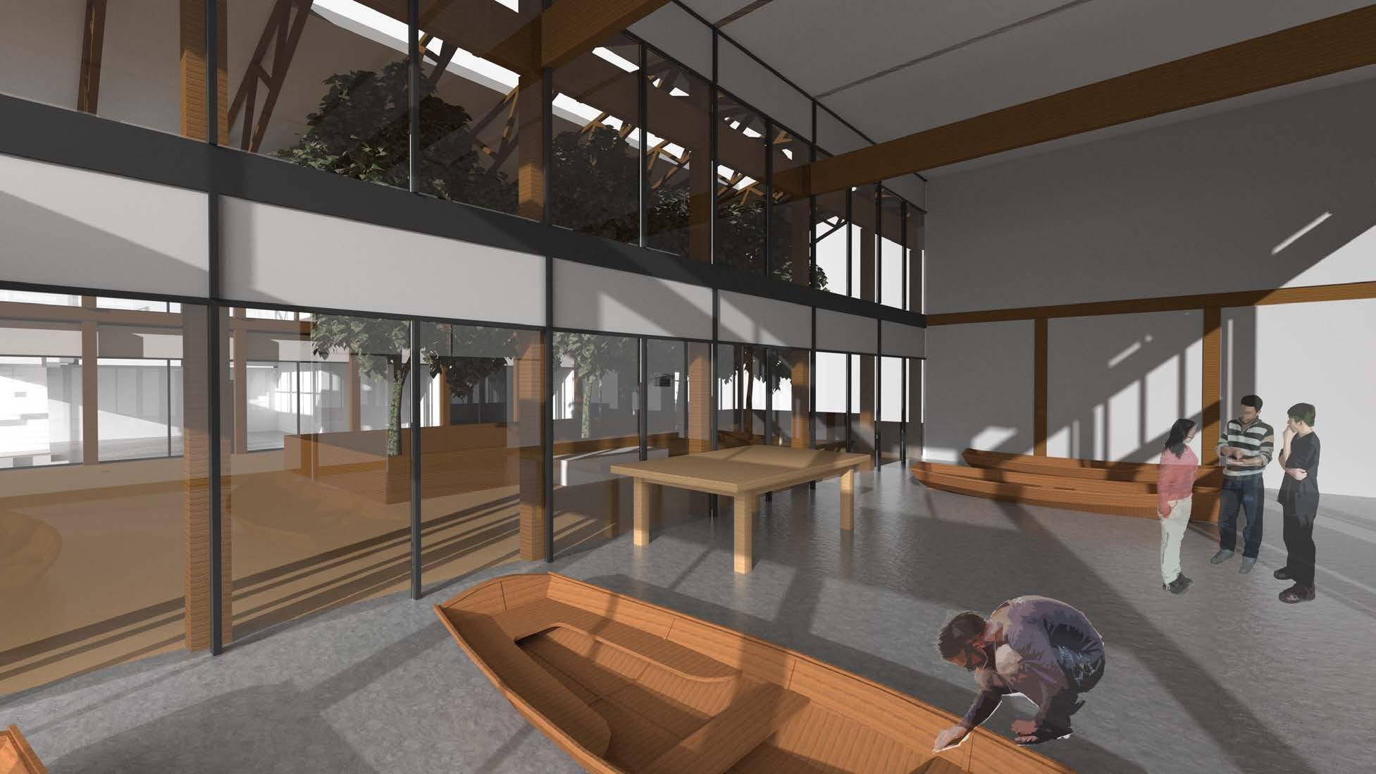 As an expansion of the existing site, this building acts as a canopy, looking to support the prospective boat builders and local Maine community. It highlights the blend of nature and wood construction through its submersion below grade and the incorporation of a courtyard that embraces the native trees.