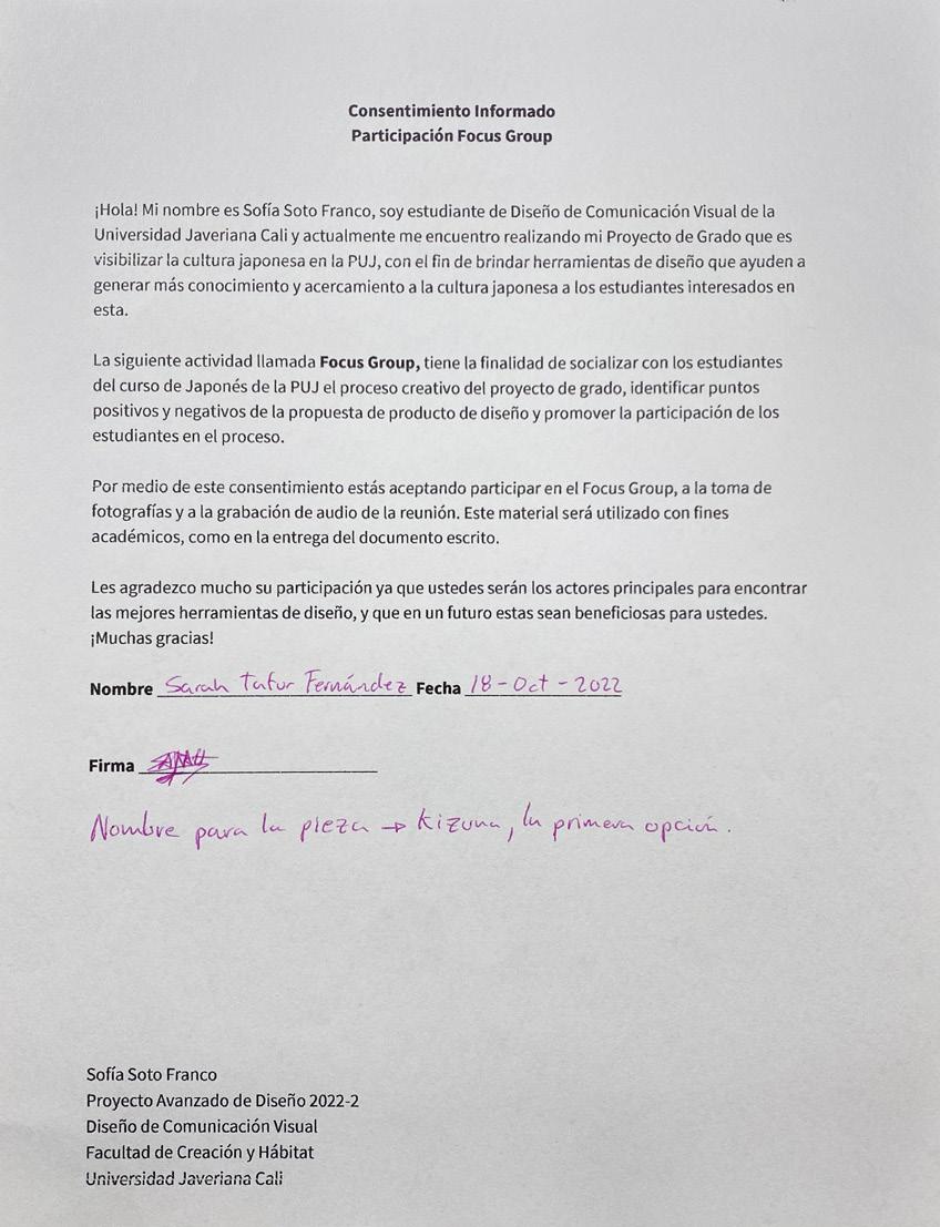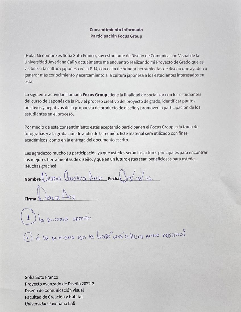 Los estudiantes del curso de japonés 2022-2 firmaron el Consentimiento Informado donde se autorizó su participación y colaboración en los Focus Group.