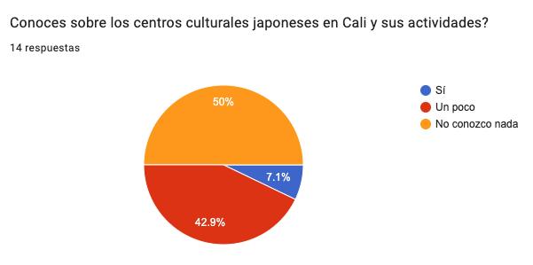 A partir de una encuesta realizada, se encontró que la mayoría de los jóvenes caleños desconocen sobre la historia de la inmigración japonesa y su influencia. Sin embargo, se encontró que hay un gran interés y motivación de relacionarse más con esta cultura ya que hoy en día hay una gran tendencia y afinidad por la cultura japonesa en diferentes aspectos como la gastronomía, el cine, arte, valores y otros. La globalización ha permitido la expansión cultural y ampliar el conocimiento so bre otros, permitiendo ampliar la visión del mundo, aumentar la creatividad y empatía. Como dice Katty Valencia (2019):