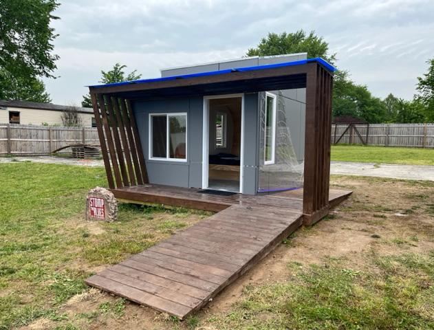 Funded by Stomp the Blues Out of Homelessness, The Gathering Tree, and Drury University, my class and I had the special opportunity to design and build a shelter for the homeless population in Springfield. The site is located at Revive 66 Campground, where there are numerous kinds of shelters for overnight sleep, bathrooms, showers, and laundry facilities. Our design was the second of its kind done by Drury students.