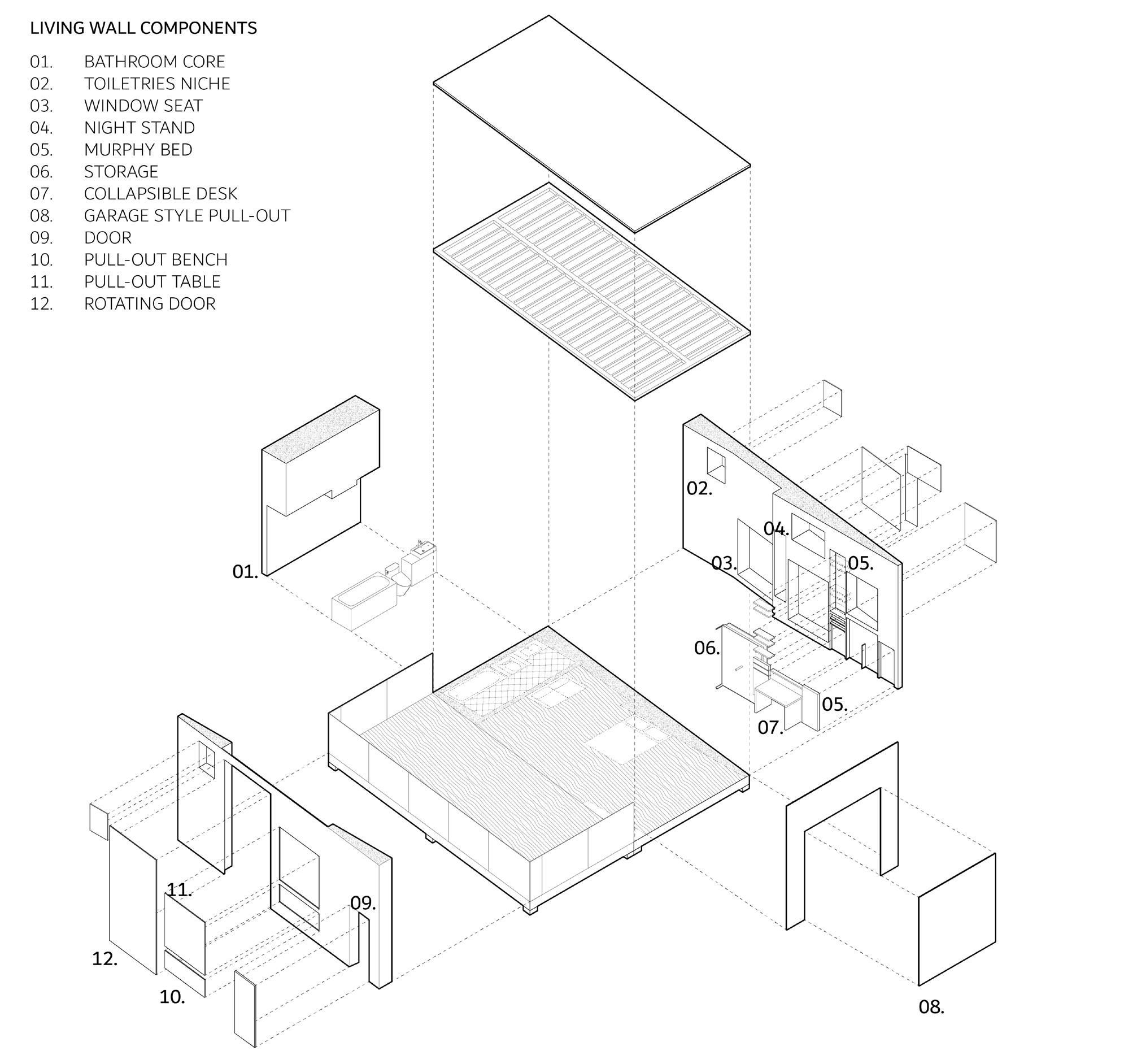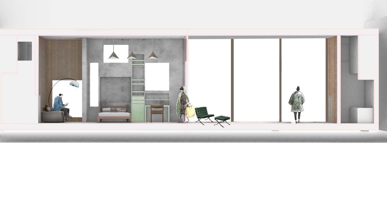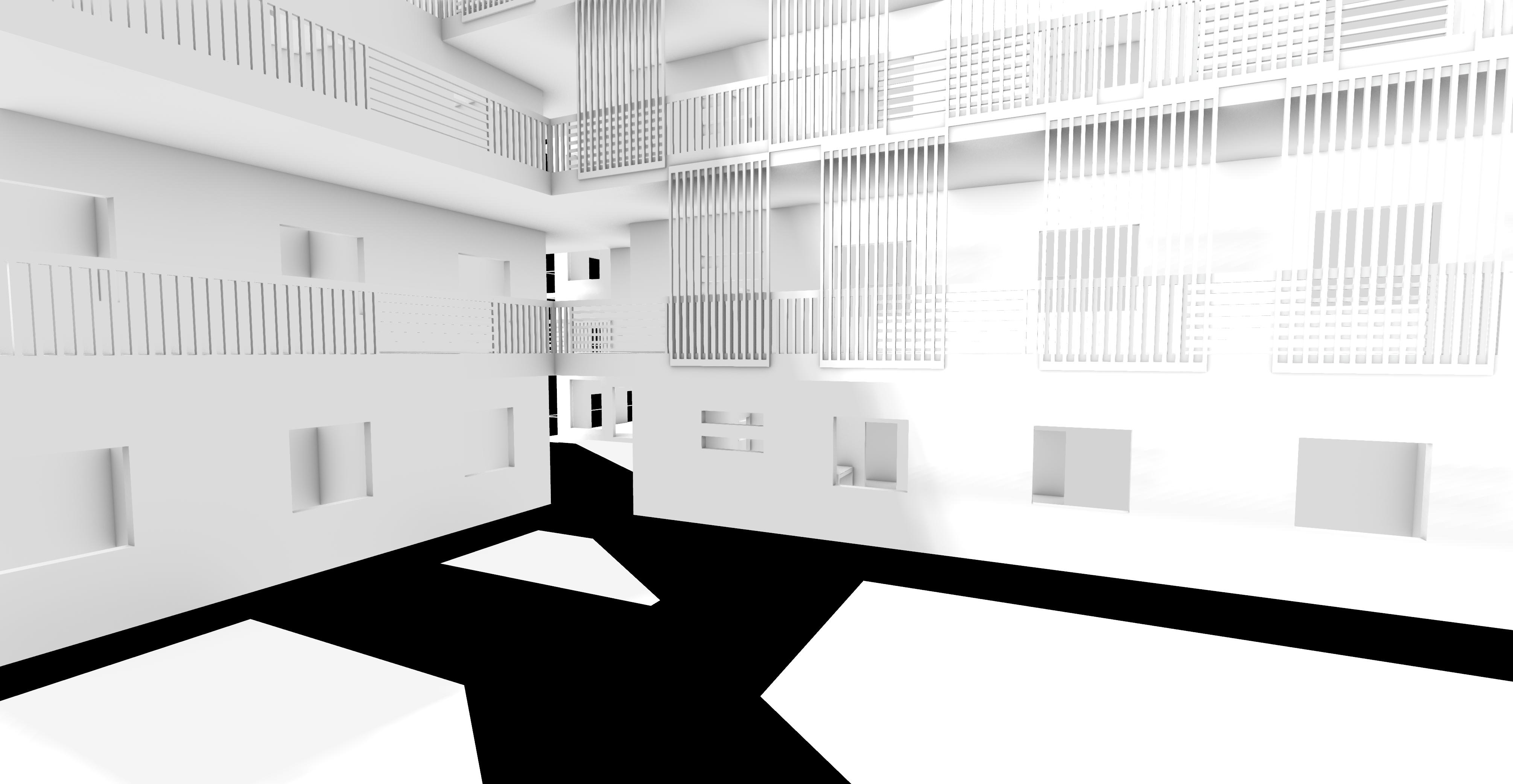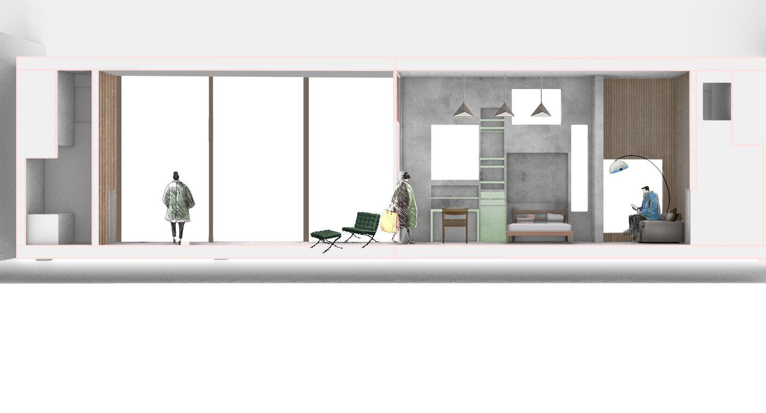Multiple iterations of massing and unit placement focused on balancing privacy and accessibility. Early design stages also considered facade elevations with movable louvers and analyzed how adjustable walls influence the transition between private and public spaces.