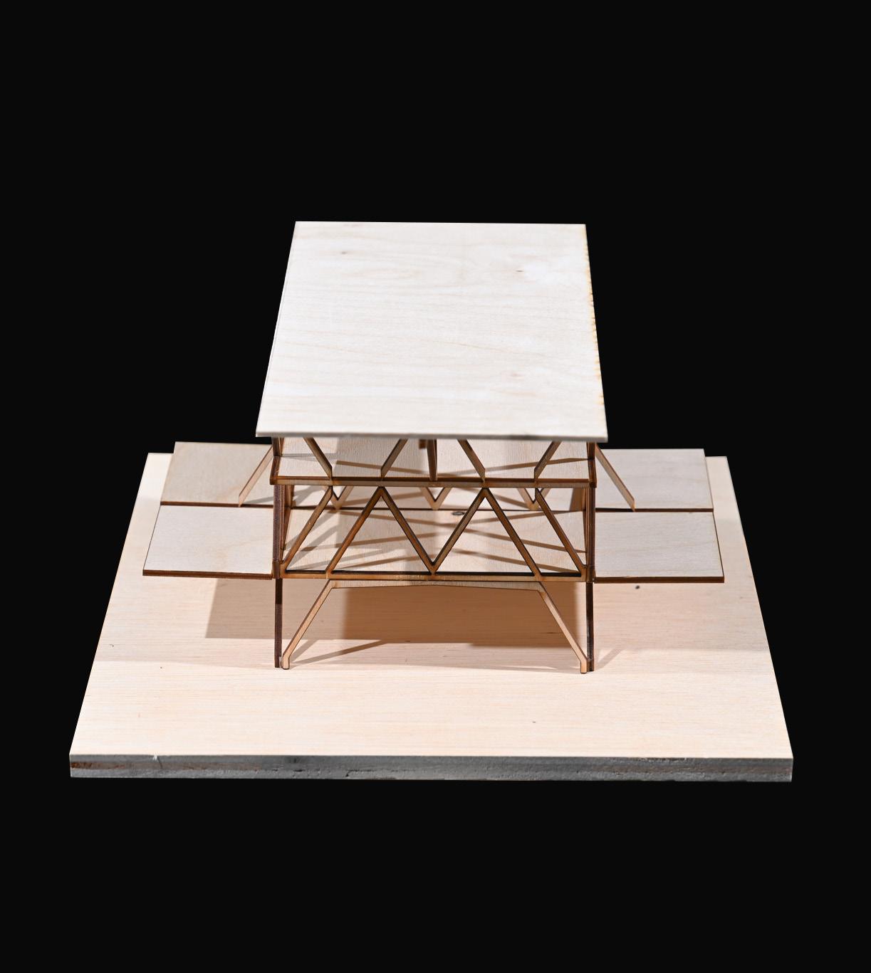 The final design was developed from version 2. The main goal remained the same: to design a pavilion using a spatial strategy that would engage with the ideas of transparency and access. The pavilion creates spatial hierarchy through elevation. Platforms and podiums create something between architecture and landscape. Now, instead of having to go through a sequence of rooms and corridors to access a space, one has to climb a flight of stairs or go up a ramp. The project addresses the underlying logics discovered in the case studies, but steps away from directly using the elements and circulation strategies found in them.