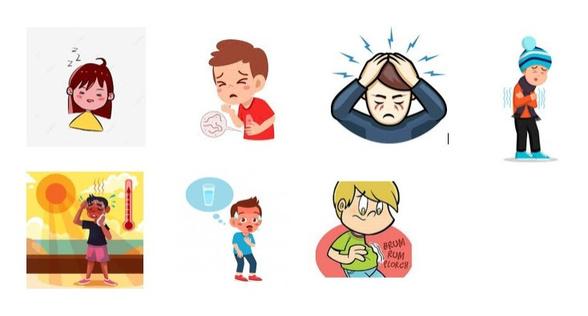 láminas donde se aprecie diferentes sensaciones como hambre, sed, dolor de estómago, de cabeza, picaduras, etc.