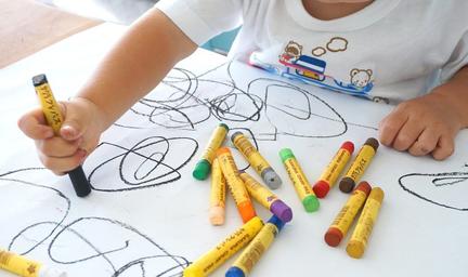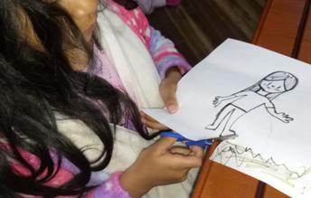 Repartir las hojas de papel y los lápices de colores a cada niño.