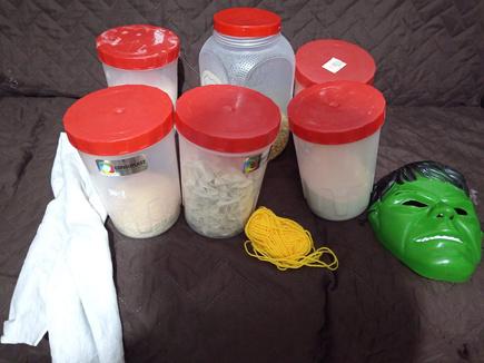 Fundas plásticas pueden ser ziploc para que sean fáciles de abrir y cerrar. hojas, mullos, botones, pintura acrílica para el tacto y a visión , salsas, o jugos , caramelos, pedacitos de limón, etc. para el gusto, perfumes, algodón o pompón para el olfato y cascabeles diferentes tamaños para la audición.