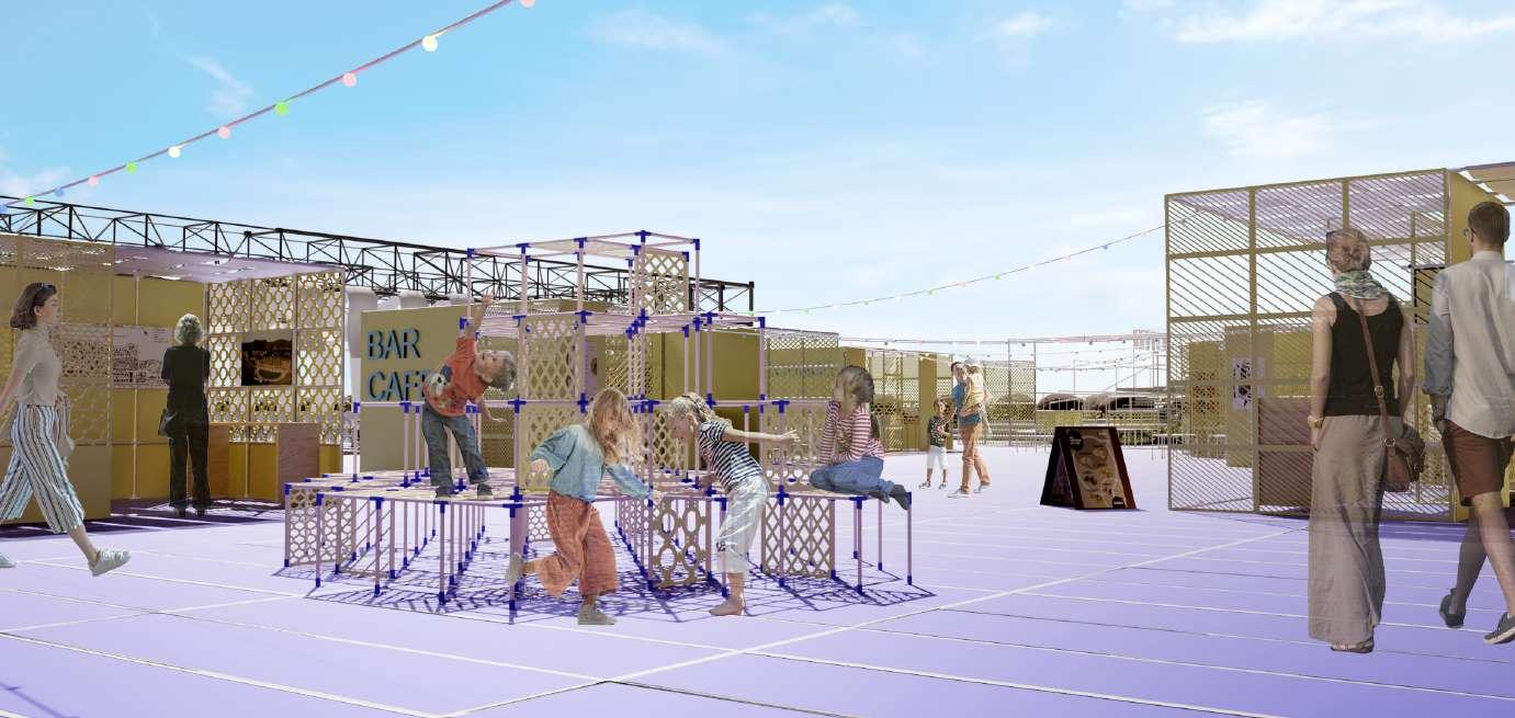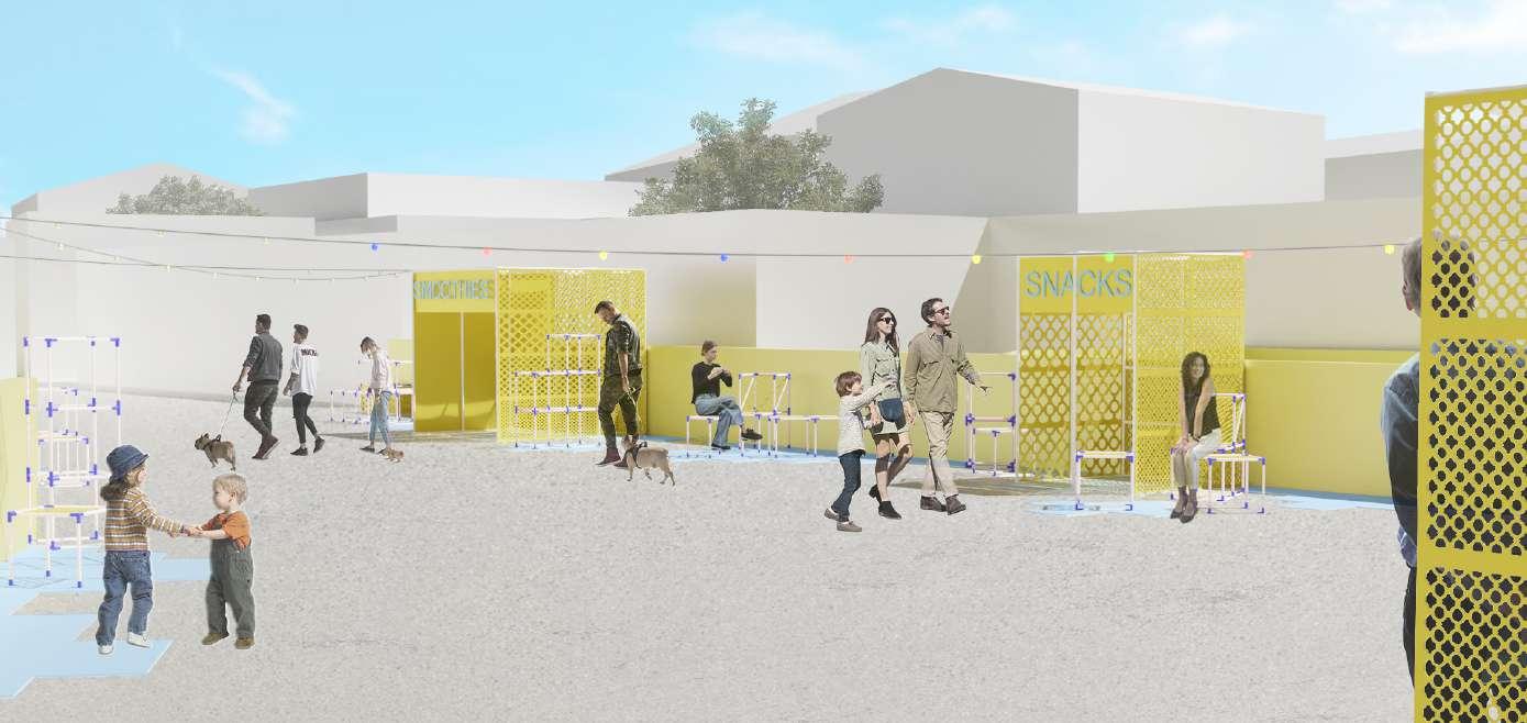 A day view to one of the Piazzas, the different elemnts give it a new funcionality which people can enjoy