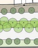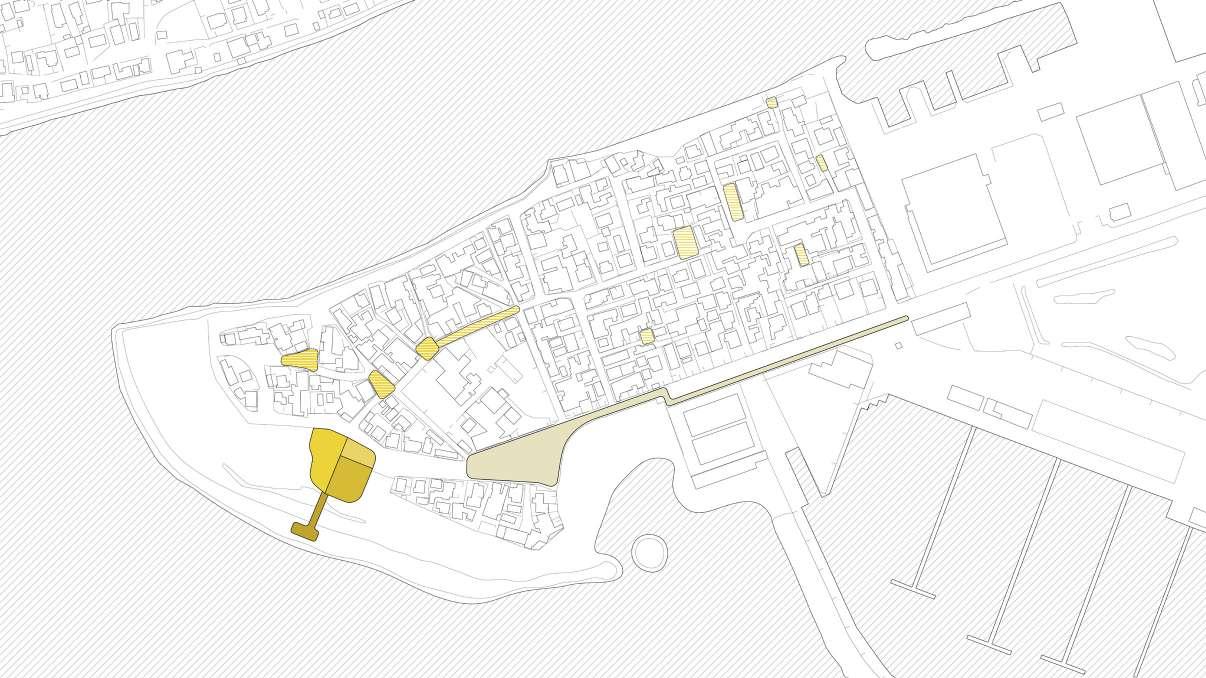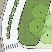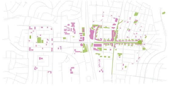 Examining openspaces - this area lacks of space for the public, by adding more greenspaces in the right places we create a green net which connects the public space and the focal points to encourage the walkability
