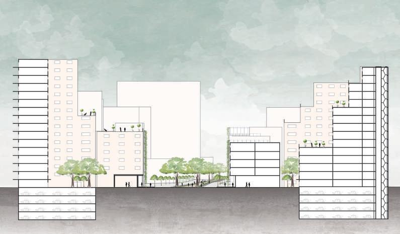 The place has the potential to become a center that serves pedestrians, the future metro station will bring with it a large number of visitors and new residents, and the green network that we propose will soften the enormous burden and make the place environmentally friendly and pleasant for pedestrians. We believe that the network that connects the existing and proposed new urban hubs will improve the existing urban framework, make the place more inviting and vibrant, and above all, reduces the need for traffic.