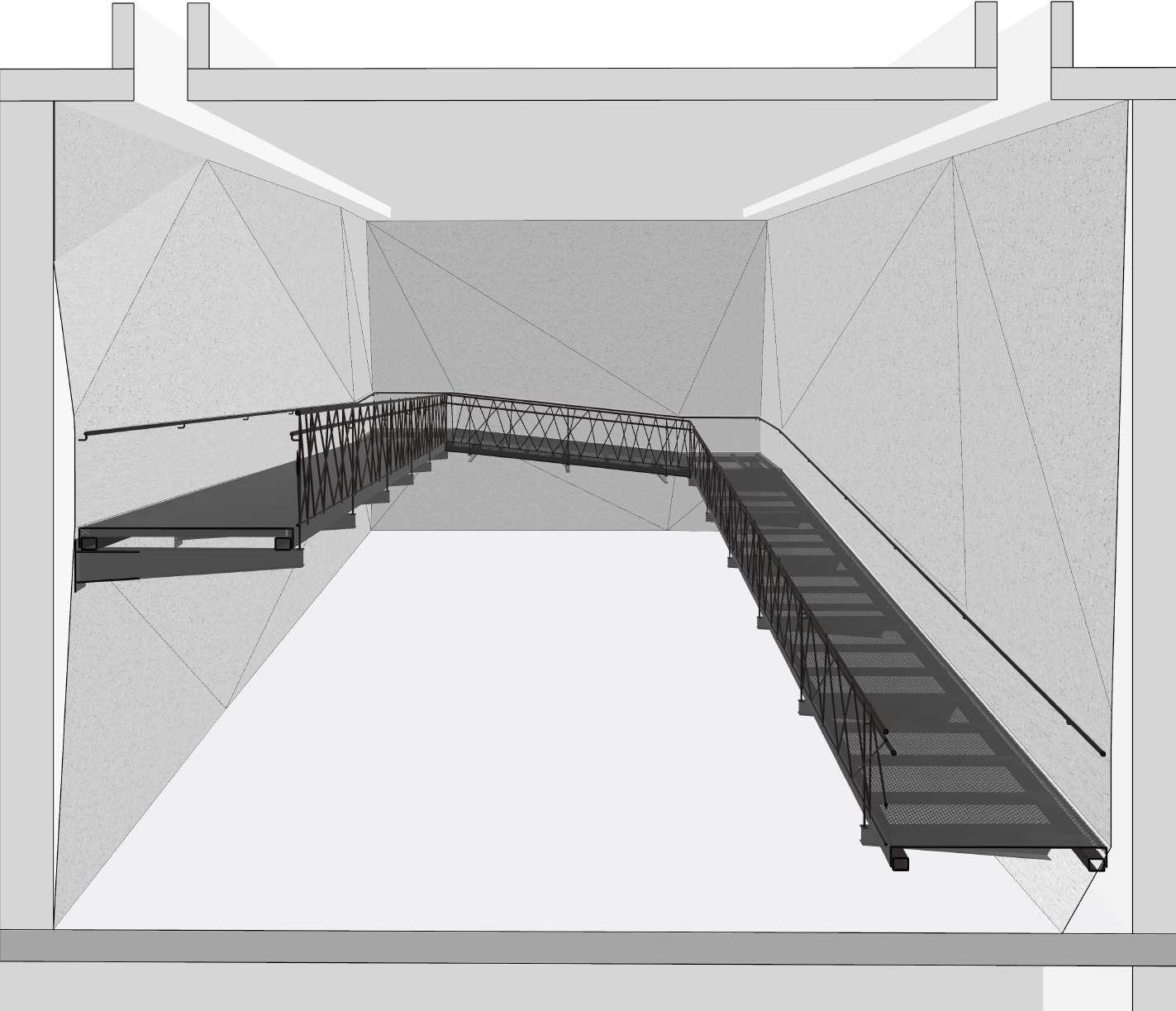 A view inside the museum showing the main movement element: designed ramps with skylight leading the way