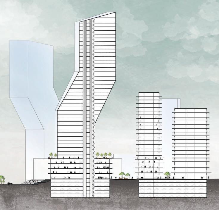 Iconic skyscraper - 60 skyscraper - 50 levels organic shape builings20/30 levels builings along the boulevard- 15 levels