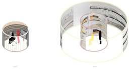 An axonometric digram showing the diagram showing the connection between the hybrid physical world with the hybrid