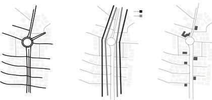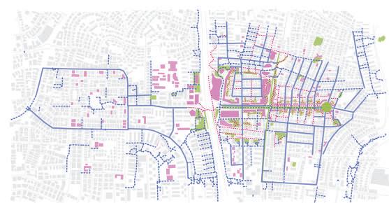 Existing Situation - Four neighnorhoos that were developed around focal points, but due to population growth became unaccessible and eventually neglected, also the lack of shading made it harder