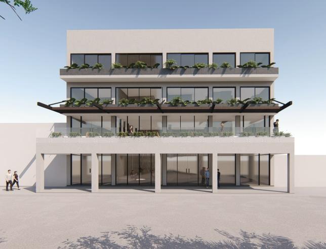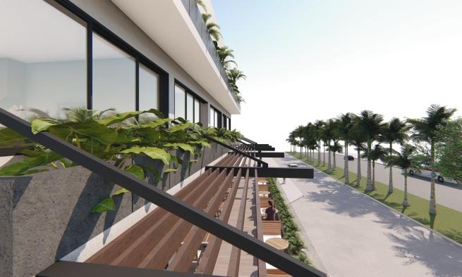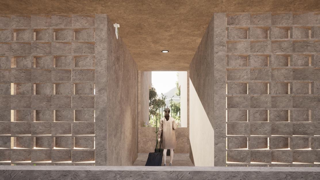 Proyecto encargado con el requisito de un frente introvertido, por lo tanto según presupuesto disponible busque esconder los accesos solo quedando un único acceso a la vista que lleva a una escalera lineal para los departamentos superiores.