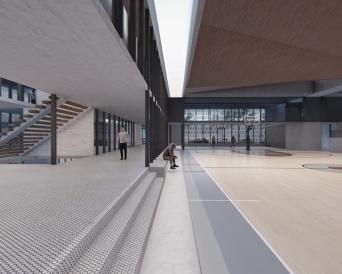 Club de barrio como punto de encuentro social, donde todas las actividades que allí se realizan son permeables hacia el exterior, y a su vez están en contacto directo con la cancha de básquet, que es el corazón del club. Los dos accesos permiten diferenciar el ingreso del público general y de los jugadores en caso de partido.