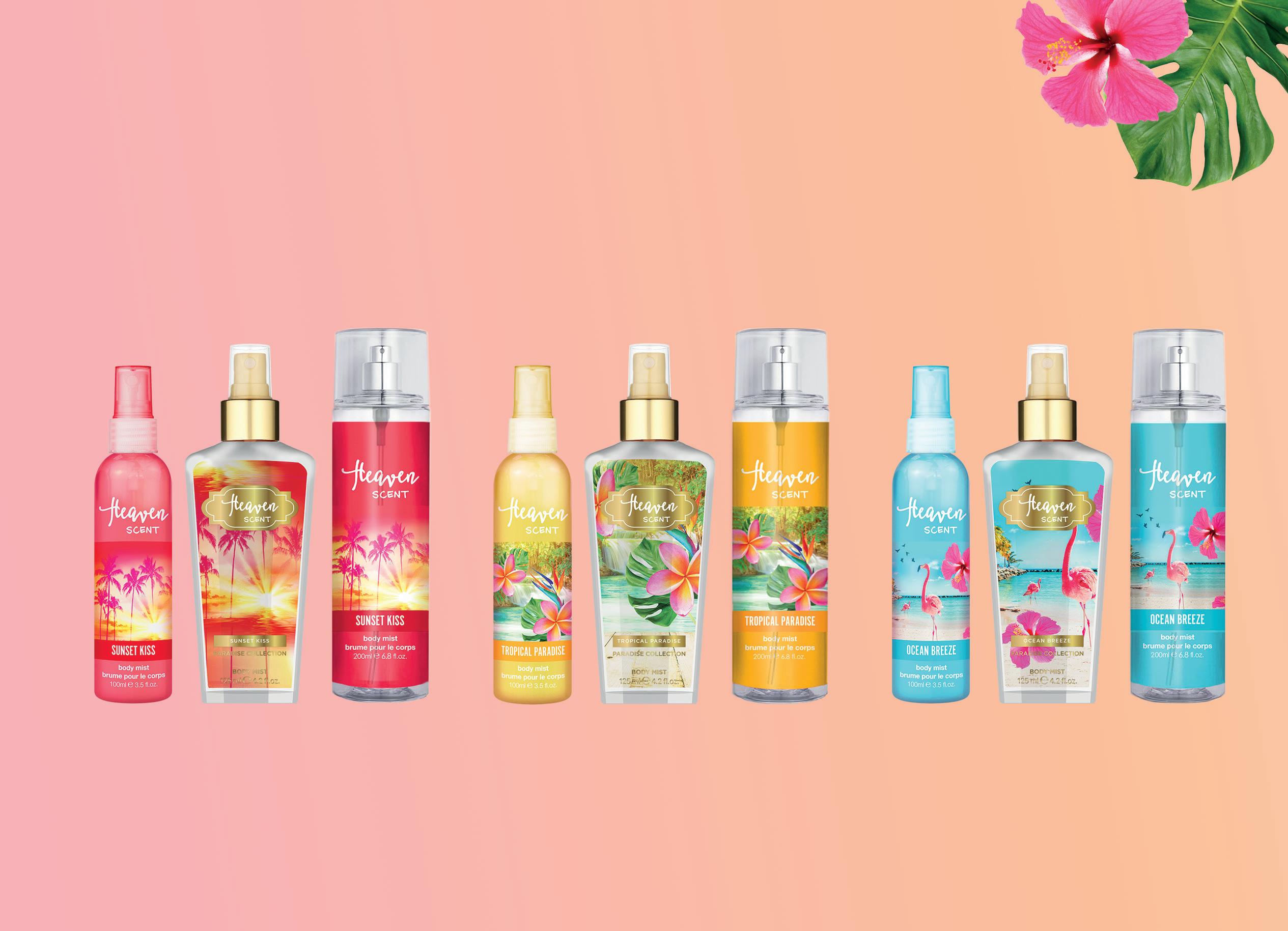 Scent Body Mist collection . The perfect range to escape to paradise with the sun on your face and ocean breeze on your hair .