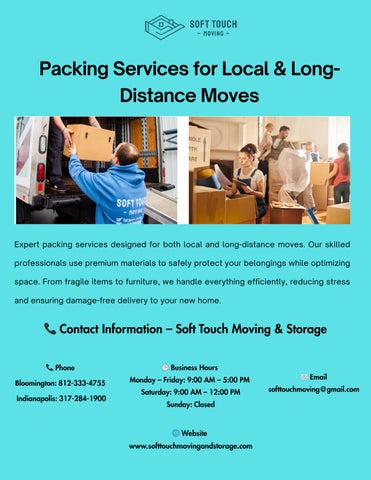 Soft Touch Moving is a full-service moving company for residential and commercial clients moving both locally and long distance. Whether you’re relocating your business, moving across town, or going across the country — we are here to help! No job is too big or too small for our professional moving crews. We provide free estimates as well as offer a full line of packing supplies and boxes. Call today for your free estimate 317-284-1900 or fill out our free Online Estimate Form.