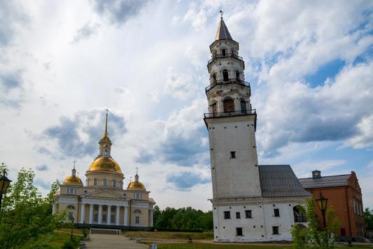 The height is 57.5m from the ground and the base is 9.5m x 9.5m. The deviated of the top part of the tower from a right angle is 2.20m.