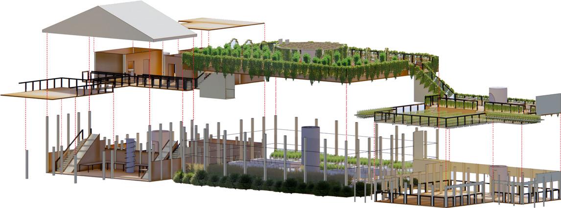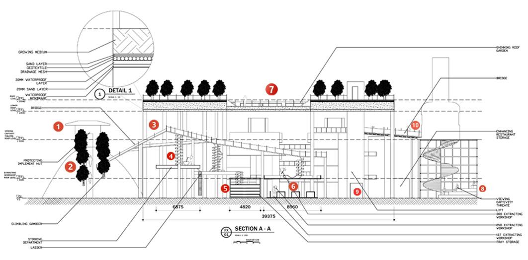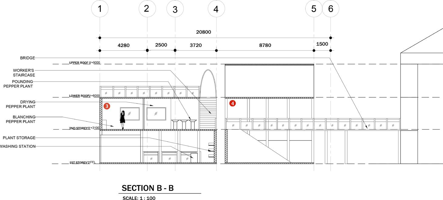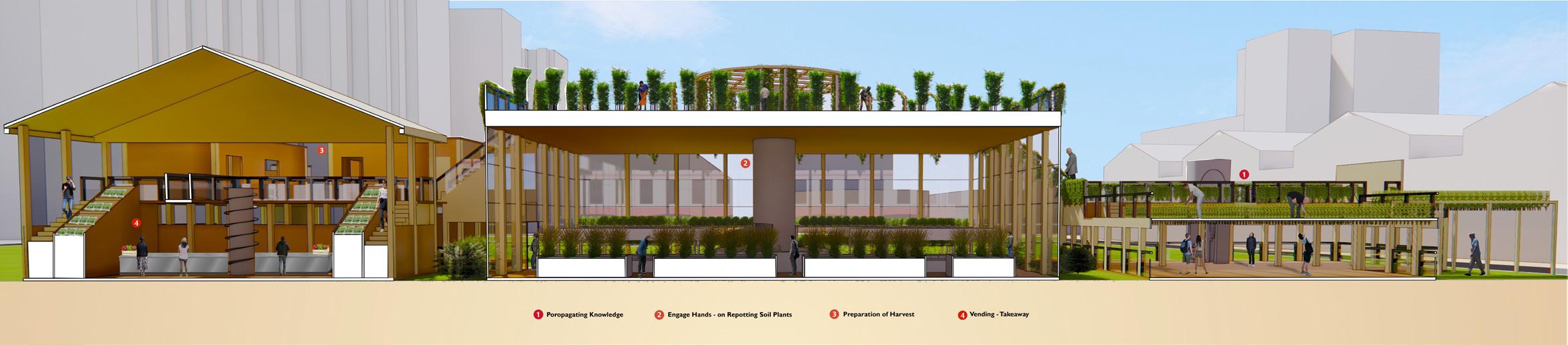 In this architecture, they are able to experience the more holistic process of cultivation - propragation propagation, farming, harvesting and retail. They are able to view the roots of the plants to see how they grow, knowing different ways of farming. Visitors are also able to see the harvesting process and able to contribute to the process by of pepper grinding power. Towards the end, they are able to touch and smell the herbs and buy it. Overall they will relive the experience the process of cultivation and understanding of how herbs and spices are grown.