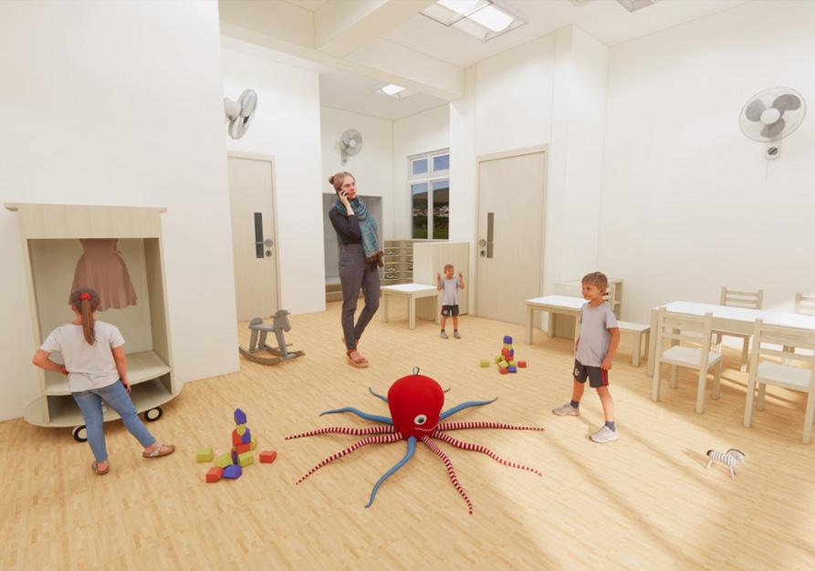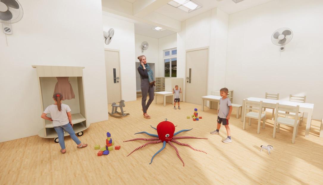 The client requested to have a 3D model of the space to visualize the space and see how the outcome could have become. Here is an example of a 3D model of the space for the upcoming childcare project that I created. The software I used is sketch up and rendering is done by using enscape. There are a total of 3 different bays in this project.