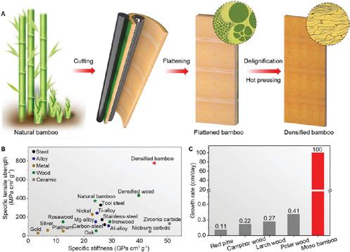 Bamboo has hallow structure. The density of the fibers becomes gradually thicker from the inner to the outer surface, suggesting the outer parts are, mechanically speaking, stronger than the inner parts.