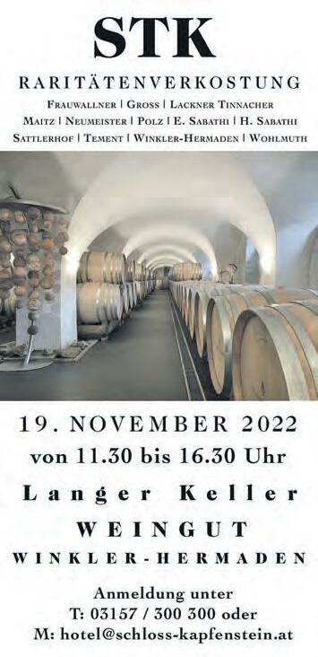 Kapfenstein: Raritätenverkostung, Weingut Winkler-Hermaden, nur mit Anmeldung, 11.30 Oberschützen: Kindermusical: Der kleine Drache Kokosnuss, Kulturzentrum, 16.00 20. November
