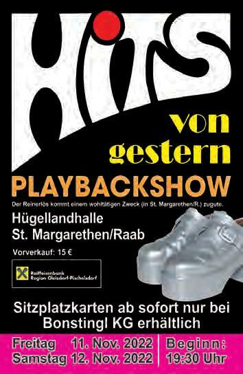 St. Margarethen/Raab: Playbackshow: Hits von Gestern, Hügellandhalle, 19.30 (12.11)