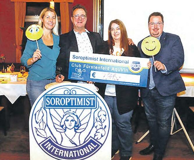 Ein spannender, lustiger und vor allem geselliger Abend wartet auf alle, die sich etwas ganz Besonderes für die heurigen Weihnachtsfeiertage gönnen möchten. Als Geschenk für sich selbst oder für seine Liebsten kann man bei der Benefiz-Weihnachtsauktion des Soroptimistinnen Club AquVin Fürstenfeld viel Gutes tun und sich das eine oder andere exquisite Exponat ersteigern –so zum Beispiel einen einzigartigen Rundflug über Fürstenfeld oder ein privates Essen, gekocht von Ernst Janits und begleitet mit Musik von Brendan und Klaus. Auch ein exklusives Exponat von Hary Schröder mit dem Titel „Fürstenfeld“ wird versteigert. Die BenefizWeihnachtsaktion mit sagenhaften 44 Losen findet am 17. November um 18:30 Uhr im Gasthaus Fürstenbräu statt. Durch den gemütlichen Abend führt Klaus Moretti. „Ich freue