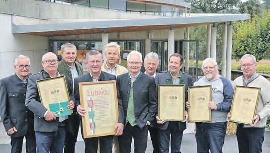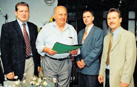 LIM Thomas Marichhofer, GO Ing. Klaus Edelsbrunner und GF Mag. Barbara Leitner von der Wirtschaftskammer überreichten Erwin Frieszl sen., Erwin Frieszl jun. und seiner Gattin Ingrid Frieszl Ehrenurkunden. Erwin Frieszl sen. gründete die Firma