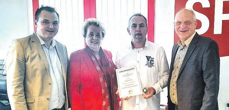 Eberau. Die Ehrennadel in Silber erhielt der ausgeschiedene Vizebürgermeister von Eberau, Günther Kroboth, von GVV-Präsidiumsmitglied LAbg. Wolfgang Sodl, LT-Präs. Verena Dunst und 2. LGF Patrick Hafner.