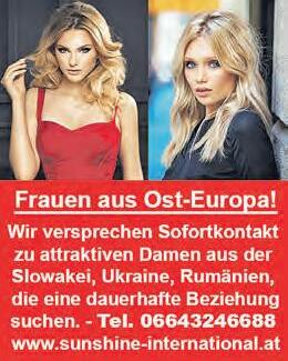 Lena 38 Ich bin eine Frau, die gerne lacht und das Leben genießt. Ich suche einen Mann, der auch Humor hat und mit dem ich gemeinsam lachen und Spaß haben kann. Tel. 0664/3246688, www.sunshine-partner.at Reinhard 62 Nichtraucher, Nichttrinker, suche eine Partnerin die auch meinen Hund akzeptiert. Bin umzugsbereit! Tel. 0664/3246688, www.sunshine-partner.at Willi 60 Das Leben genießen wo bist Du? Ein Mann der weiß was er will… Tel. 0664/3246688, www.sunshine-partner.at