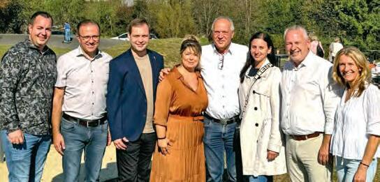 In Rechnitz wurde die neue Radservice-Station am Bahntrassen-Radweg feierlich eröffnet: Dietmar Salmhofer und Harald Popofsits mit Bgm. Martin Kramelhofer und den übrigen Verantwortlichen.