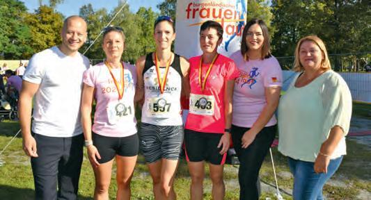 km Nordic-Walkingstrecke. Der Frauenlauf punktete auch heuer wieder mit sozialem Engagement. Seit Jahren wird sportliches und soziales Engagement sehr erfolgreich für eine gute Sache vereint. Pro Teilnehmerin geht wieder ein Euro des Nenngeldes an die Krebshilfe Burgenland. LH-Stv. Astrid Eisenkopf übergab im Rahmen der Siegerehrung einen Scheck in der Höhe von 550 € an Dr. Doris Glocknitzer-Mad von der Krebshilfe.